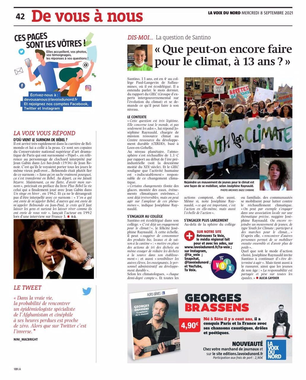 En cette « chaude » rentrée, il s’est évidemment questionné sur le sujet sensible de l’évolution du climat et sur le rôle des ados pour tenter d’améliorer le cours des choses.